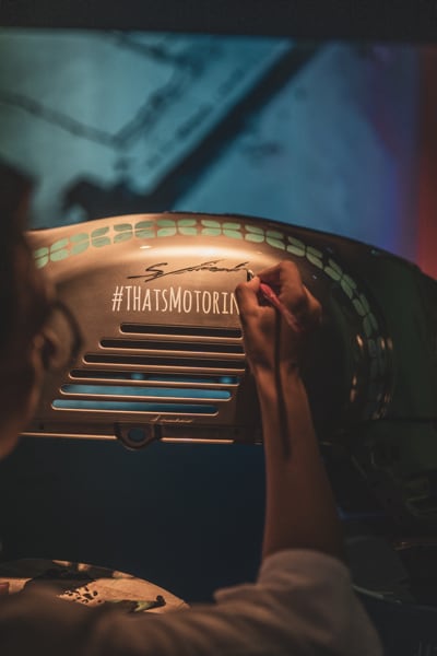 In 2015, he was selected for an art tour in Spain, with two exhibits at the C.A.C. Mijas Museum Picasso and the Museo de Los Galves in Macharaviaya (Malaga). He participated in the Picasso tribute at the CASINO DE MARBELLA with a few works selected for the event presentation cover. Concluding the path at the CLUB NAUTIC of SALOU (Tarragona). During the year 2016, he was selected for the Trivero City Art Reward, Biella Province. In late 2018, he organised the personal exhibit entitled “ThatsMotoringArt – Quando il motore dell’arte è la passione” (‘When the engine of art is passion’), curated by OrtaVintage – Galleria OrtArte, at the Mirafiori Gallery in Turin. Given the success of the exhibit, the artist was hired to leave the collection on display permanently in the Mirafiori Gallery. In February 2020, at the Fiat Chrysler Motor Village Marylebone in London, Berardino inaugurated a personal exhibit entitled “#ThatsMotoringArt®️ The Art of Motors in London”: a collection of 27 works, celebrating the anniversaries of Panda and Alfa Romeo for the occasion, and completing the collection with two personalised works. In 2021, with the foundation of the Italian/French Stellantis group, he created a new collection called “ThatsMotoringArt-E” intended to celebrate the electrification of the range. In 2022, he confirmed the partnership with the new flagship dealer “Stellantis&You”. And now he has a personal exhibit at the Piaggio Museum in Pontedera, celebrating Vespa.