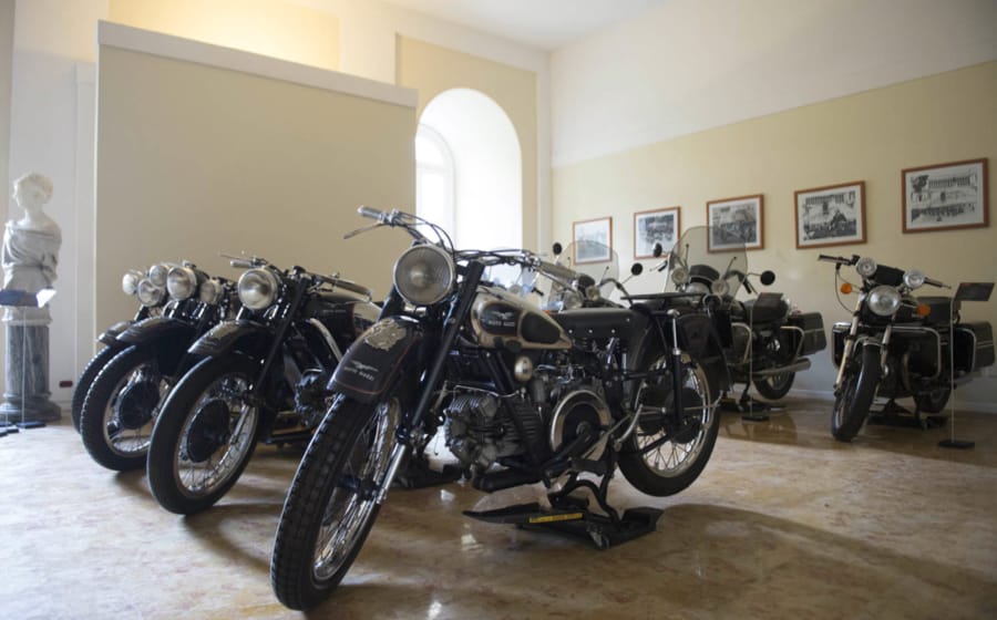 Several historic Moto Guzzi bikes are on display at the “Maggiore Alessandro Negri di Sanfront” Barracks, a testament to the many years of service as the escort for the Italian President.