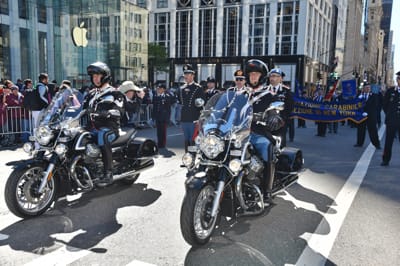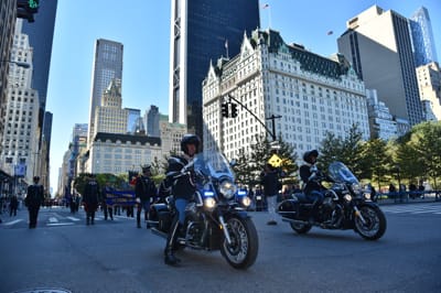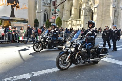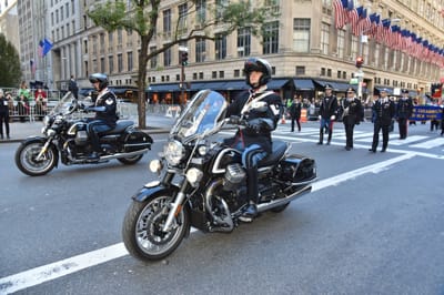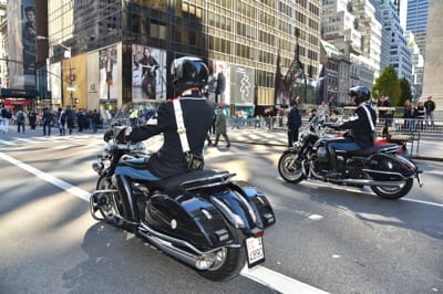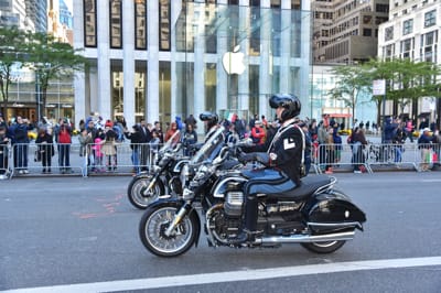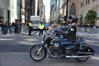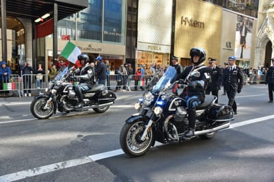 THE MOTO GUZZI OF THE “REGGIMENTO CORAZZIERI”, WHICH IS THE HONOUR GUARD FOR THE PRESIDENT OF THE ITALIAN REPUBLIC, HAVE ENCHANTED THE PUBLIC CRUISING THE STREETS OF NEW YORK, IN FRONT OF MORE THAN 35 THOUSAND PEOPLE.