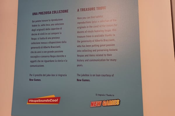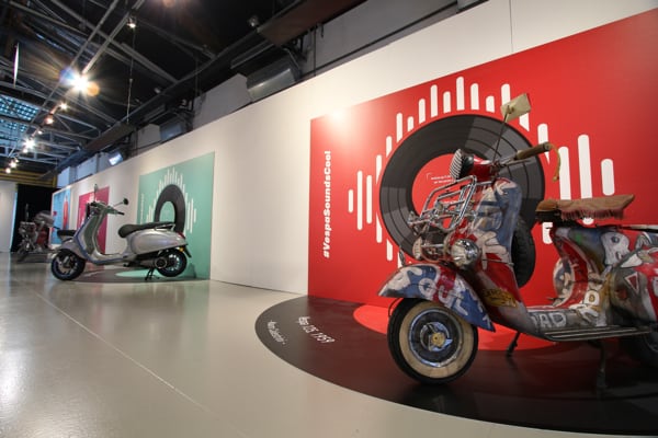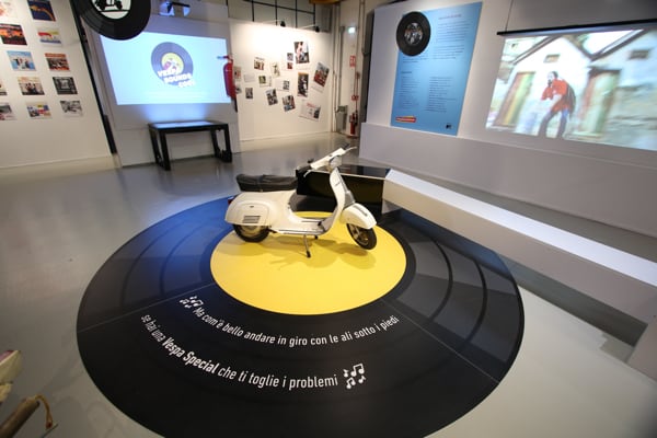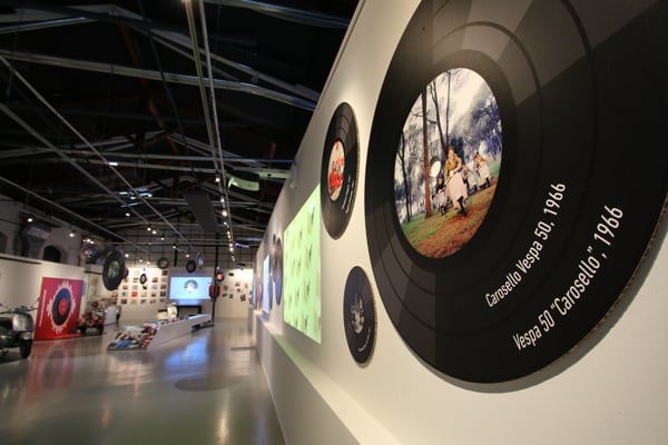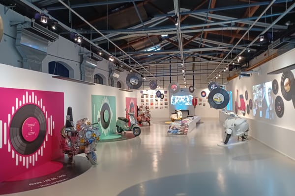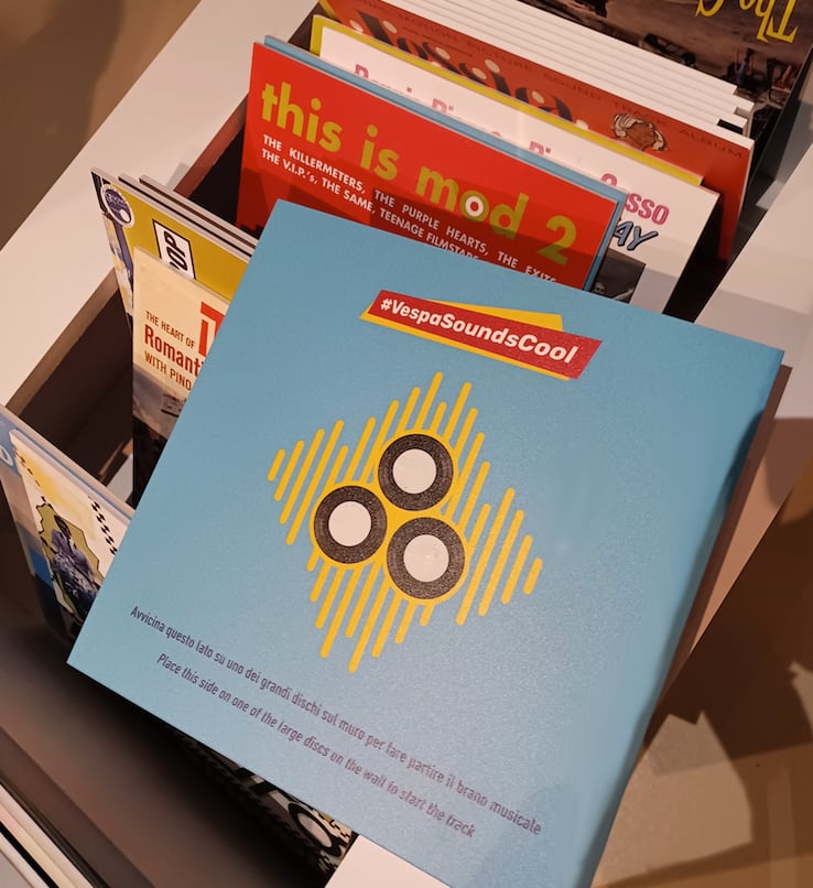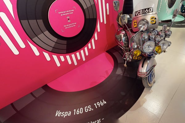In the rooms of the Piaggio Museum, which can also be visited via virtual tour on Museopiaggio.it, a range of extraordinary artefacts that illustrate the long relationship between Vespa and music are on display, including rare vinyl records with Vespa covers that visitors can also listen to, courtesy of the interactive stations and an authentic vintage jukebox.