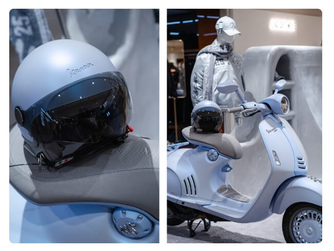 Vespa's foray into the lifestyle sector has been further strengthened by the launch of a global retail initiative, which will see the staggered opening of a series of pop-ups in selected prestigious locations in the first quarter of 2025. This project was inspired by the vision of the Vespa as an icon, which has evolved from a mere vehicle to a genuine object of design. No longer confined to spaces dedicated to traditional two-wheelers, Vespa is incorporated harmoniously into exclusive contexts where luxury and lifestyle come together, providing a unique and sophisticated experience.
