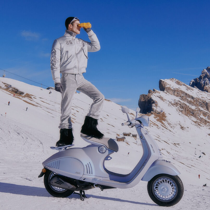 The icy tones of winter unite the pop-ups, and serve as the inspiration for the Vespa Snake Capsule collection, while the snake logo pays tribute to the lunar calendar and celebrates the arrival of 2025. On this occasion, the limited-edition Vespa 946 Snake is unveiled with a design inspired by the frozen landscapes and ethereal beauty of the coldest season, embellished with graphics featuring a snake - a majestic, enigmatic creature that invites us to overcome our limits, live boldly and to voyage beyond the boundaries.