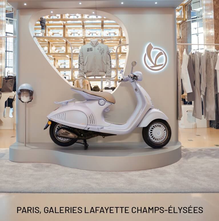 After Vespa’s stop in Rome at the Rinascente Tritone, the first date in 2025 was at the Galeries Lafayette Champs-Elysées in Paris, from 7 January to 5 February. Next up is the Rinascente in Milan, then Vienna, Beijing Galeries Lafayette, Istanbul Vakko, Bangkok Emquartier, Singapore Paragon, Hanoi Trang Tien and Jakarta Plaza Indonesia.