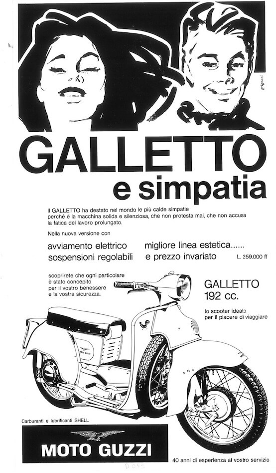 It is, of course, the Moto Guzzi Galletto: launched in the spring of 1950 at the Geneva Motor Show, this bike proved to be a huge commercial success, with over 71,000 units sold by 1966.