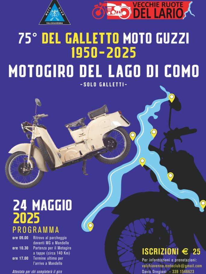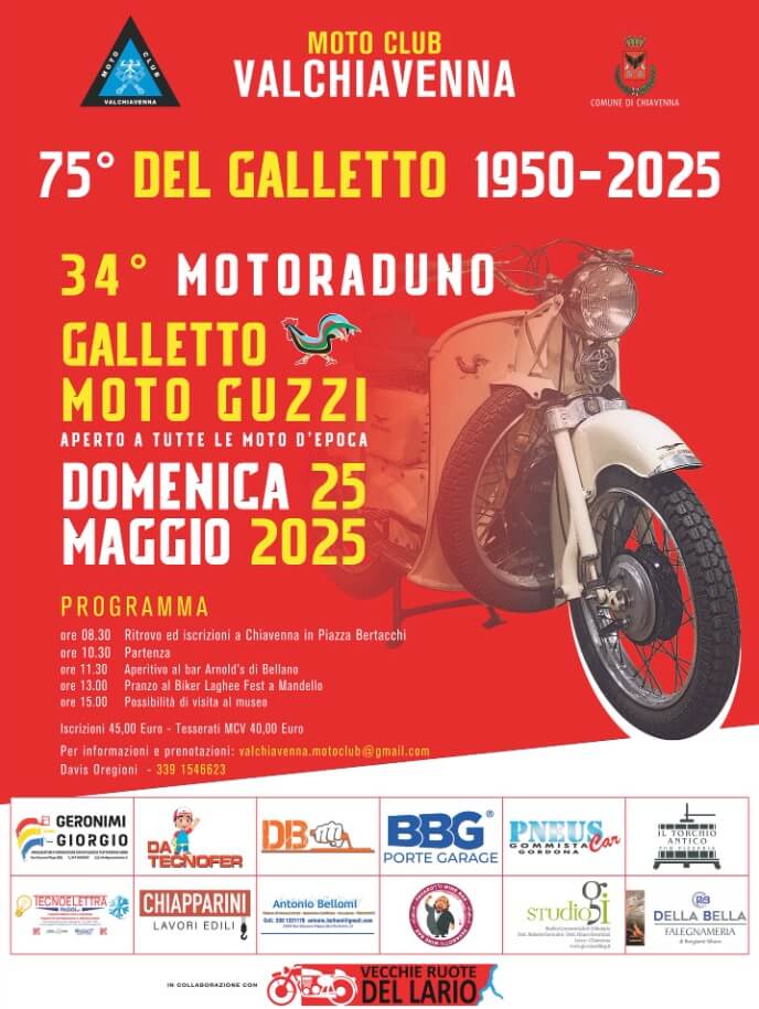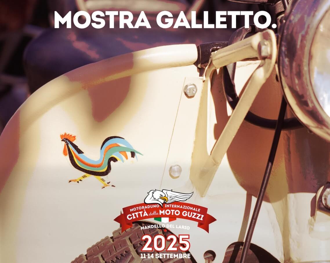 During the announcement of the 2025 edition of the Città della Moto Guzzi International Motorcycle Rally in Mandello del Lario, the post by the organisers dedicated to the exhibition focused on the Galletto: “Moto Guzzi Galletto. The brilliant vehicle invented by Carlo Guzzi, combining the practicality of a scooter with the robustness and safety of a high-wheel bike, will be celebrated and admired in a dedicated exhibition located in the square, directly in front of the factory where it was created.”