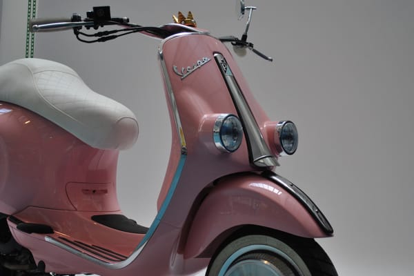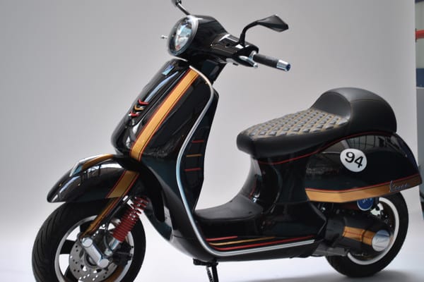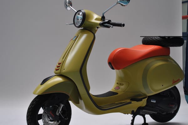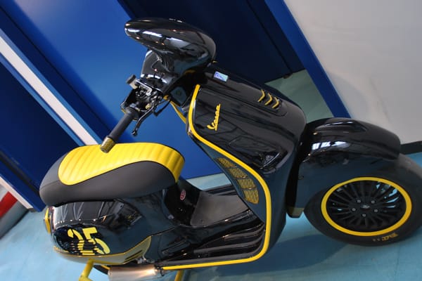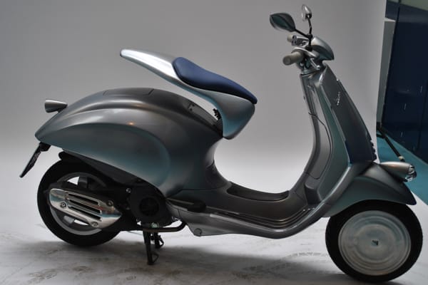 The winning Vespa is an elegant scooter combining original lines and satin-finish paintwork with forward-looking technological “inventions”: the 100th anniversary Vespa designed and produced by the Trippini-Pintus duo. Their winning idea is “Trip to time 1946-2046”: a scooter with touch buttons for the indicators, horn, ignition.