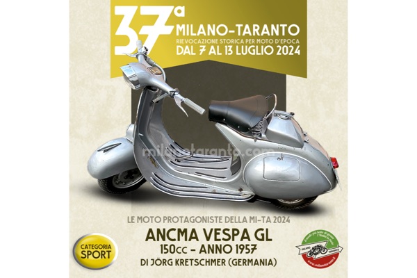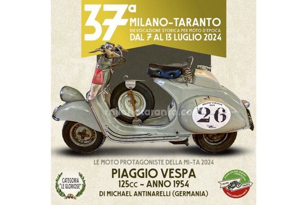 A great range of vintage Vespa, Gilera and Moto Guzzi motorcycles took part in the event: a selection can be seen in this photo gallery. We’ll leave it to the readers to guess the vehicle models, and to discover the winners of the MI-TA 24 on the event website: www.milanotaranto.com