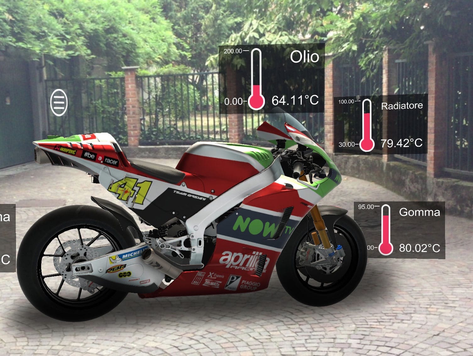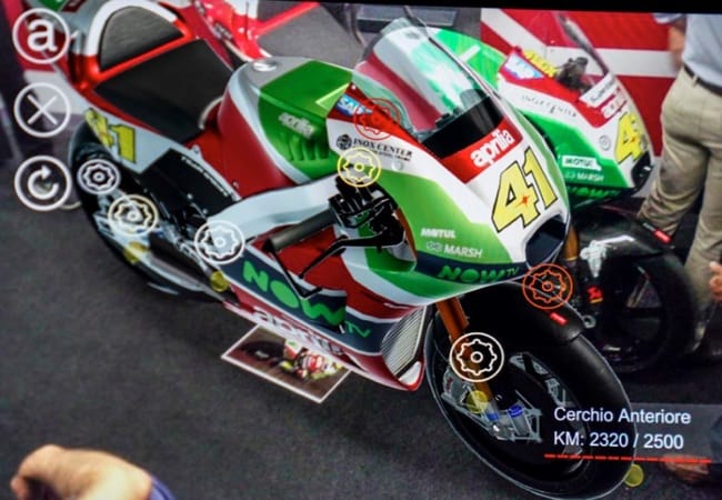 Through a 3D hologram of the entire racing bike, the mechanics will then be able to see in real time the telemetric data of the temperature of water, oil and tires at the point where they will be most useful. They will also be able to make a checklist of the wear on some parts of the bike and evaluate when to do the replacement.