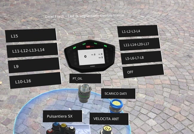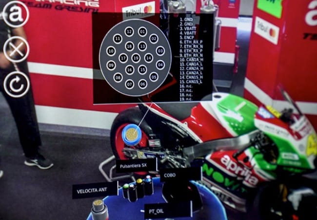 With AR, Aprilia mechanics are able to visualize content related to motorbike and info-graphics that respond to the user’s control in real time. The mechanics can interact with models of pin-out connectors and see the wiring capabilities by looking at each connector individually. This feature involves speeding up the cable connection activity and virtually zeroing the risk of error by the mechanics.