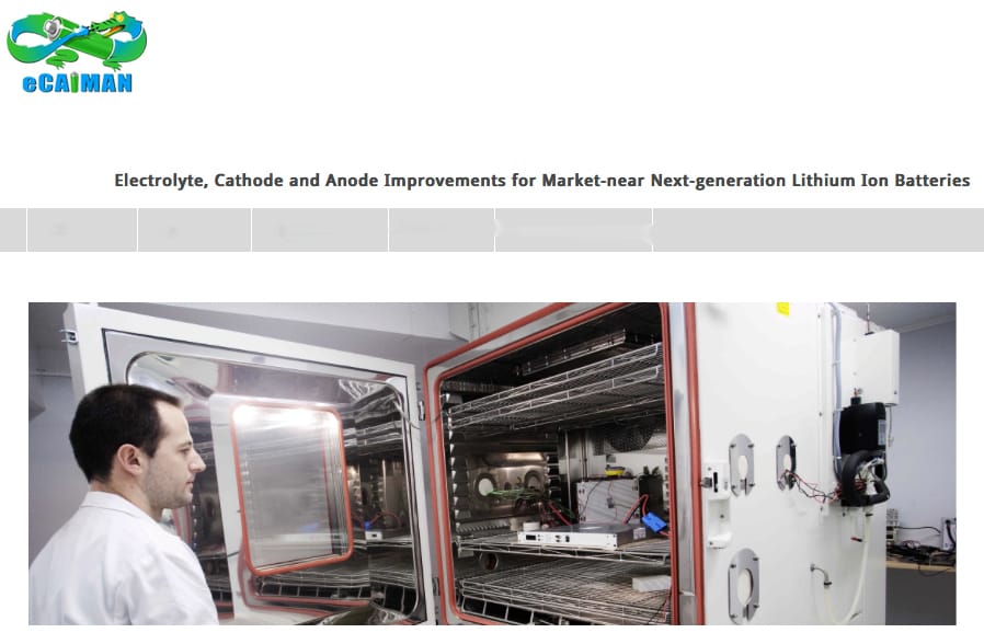 Also as part of the European Green Vehicles Initiative (GV1-2014 program-Next generation of competitive lithium ion batteries to meet customer expectations), approval has been given to the eCAIMAN project - Electrolyte, Cathode and Anode Improvements for Market Near next generation of Li-ion Batteries.