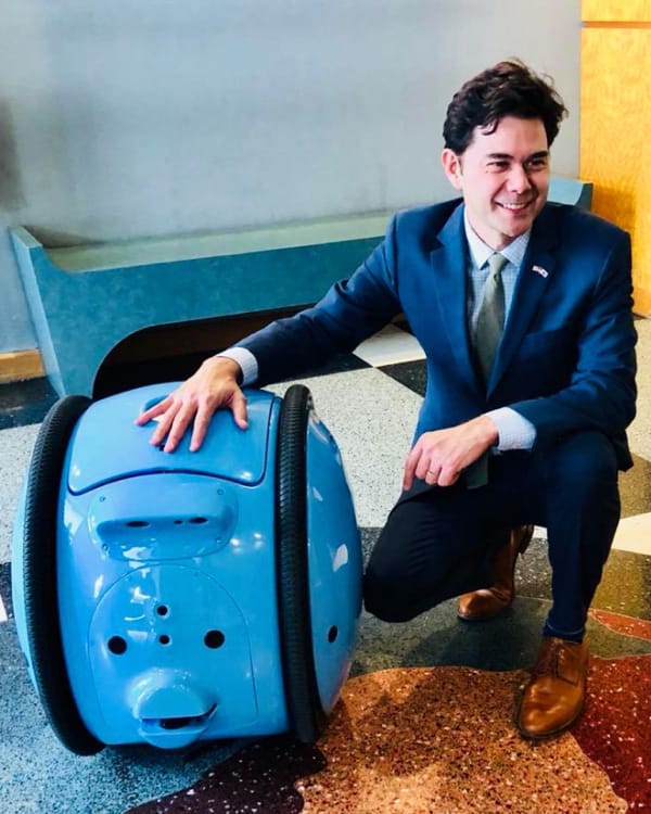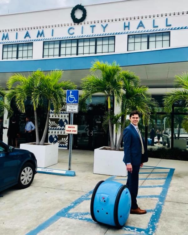 February 2018 – Something truly new has been seen on the streets of Los Angeles: GITA, the innovative creation by Piaggio Fast Forward, was in action as a mobile-carrier which “follows” its owner carrying their things and helping them with the chores of everyday life. The innovative cargo-robot also hit it off with the Commissioner of Miami City, in Florida, Ken Russell (in the photos below), at a meeting on the theme of urban mobility.