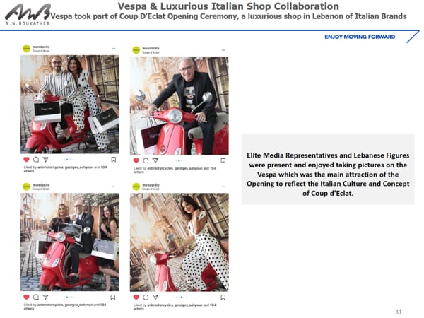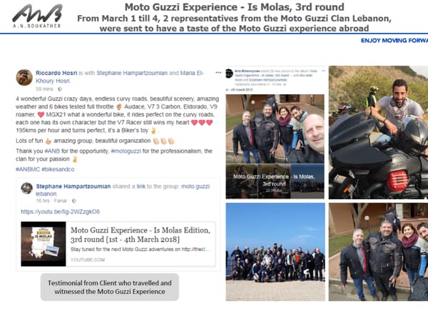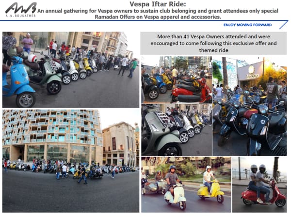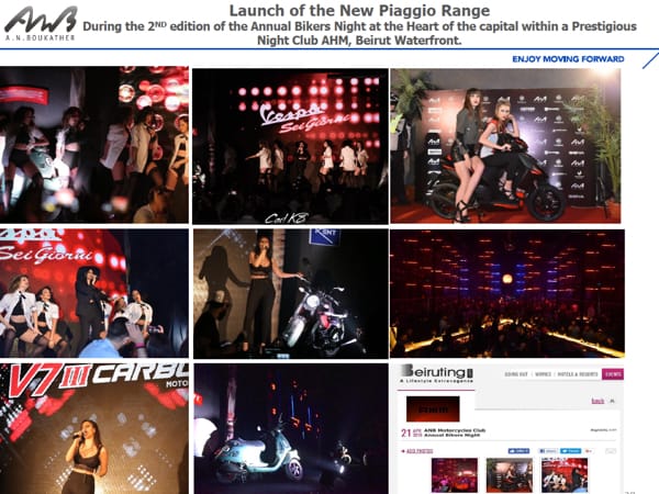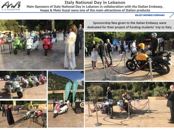 A.N. Boukather, the exclusive dealer for the Piaggio, Aprilia, Vespa and Moto Guzzi brands in Lebanon, reported a positive 2018 in terms of the quantity and quality of marketing and communication events and activities, from the most traditional to the most innovative; and the company is already planning to surprise customers and enthusiasts with a packed calendar for 2019 celebrating the pleasure of two-wheeler travel, be it on a scooter or a motorbike.