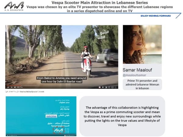 Vespa on TV in the Mashou Ma3na series, exploring Lebanon with Samar Maalouf. Video, Episode 1: www.youtube.com/watch?v=wK_lX0EwMPc