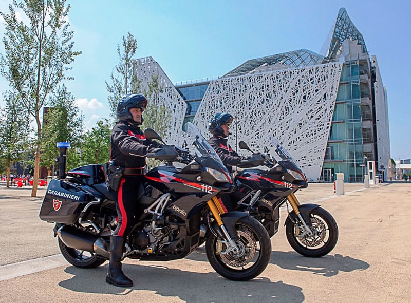 The photos in this article (supplied by the Carabinieri) show the Aprilia Caponord motorbikes “on duty” in Milan, providing surveillance at Expo 2015. The Carabinieri motorcyclists – who go out in all weathers and on any roads – and will have the opportunity to appreciate the ridability, comfort, versatility and technology of the Aprilia Caponord.