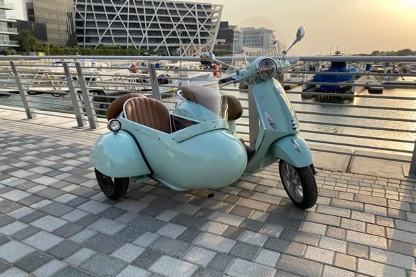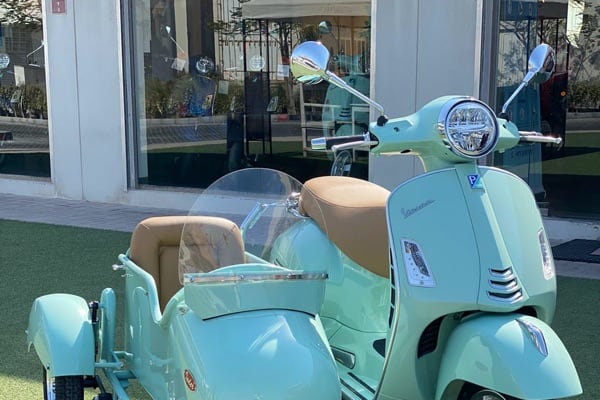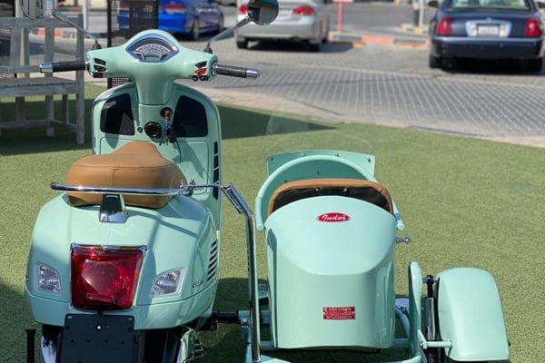 September 2020 - News from the United Arab Emirates in and around Dubai (and also in Bahrain) reports that Vespa GT customer purchase the ‘standard’ scooters from dealers of the importer (Society Motors) and then take them to specialised workshops to have a sidecar made, perfectly colour-coordinated with the livery of their Vespa, even taking care of having it certified through the local authorities.