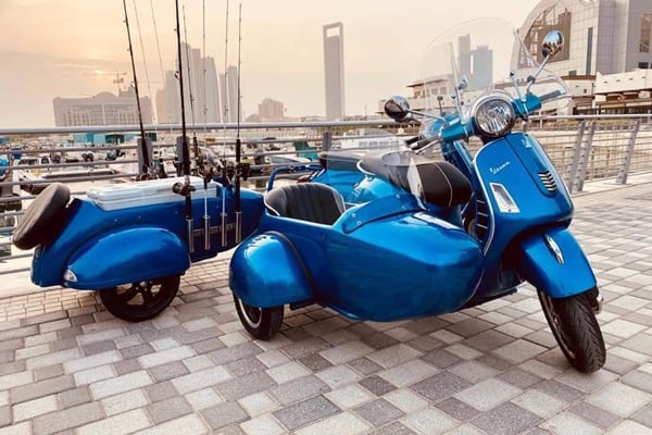 There is the “classic” sidecar, a passenger carrier model, complete with windscreen, and the version with a tow hook is all the rage. It comes complete with tubes on the side to carry fishing poles, fastened to the body, ready to go fishing with all the necessary equipment. Riding in style on the elegant seaside streets of the modern Arab capital on the Arabian Gulf.