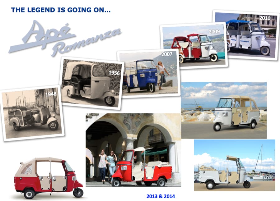 APE’ ROMANZA – OFFICIAL VIDEOThe Ape has been a commercial success for decades, thanks to its well-known strengths: robustness, reliability, low fuel consumption and maintenance costs, “Italian style” design and a unique “heritage” in its category. The two new versions – City and Romanza – are both intended for passenger transport services, and have been developed and produced with the focus on technological evolution and design.