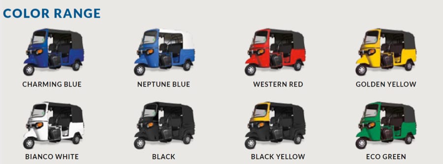 The new Apé City (200cc displacement, available in various fuel versions: petrol, diesel, GPL and methane) comes in a large range of colours.