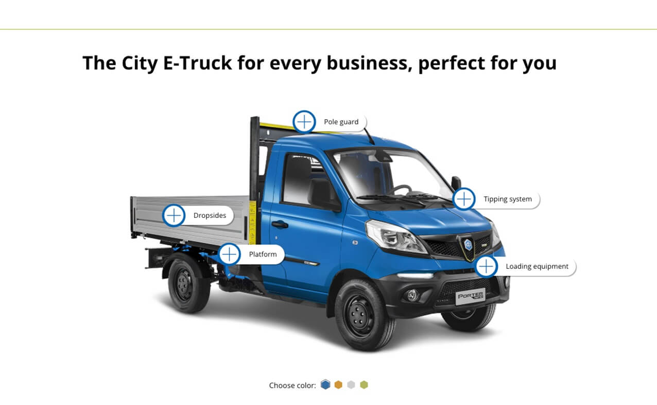 At our 160-square-metre stand, the Porter NPE, a fully electric Tipper Single Wheel version designed for customers seeking a compact, versatile, zero-emission vehicle.