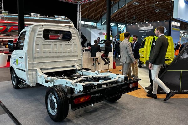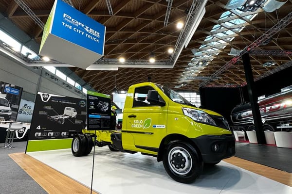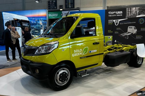 On display in the dedicated stand (Pavilion A7) were a Plaster White Single Wheel Short Wheelbase Porter NP6 (photo above) and a Dual-wheel rear Long Wheelbase Porter Chassis in the special Verde Limasa colour (photo below).