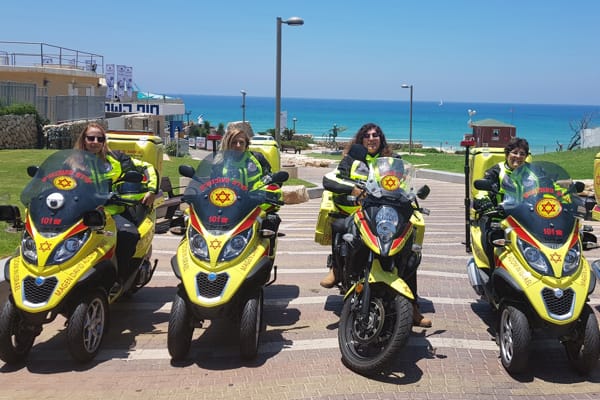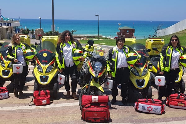 12 July 2018 – Kobi, the manager of OFER MOTOR CO. LTD., the Israeli importer for the Piaggio, Vespa, Moto Guzzi, Aprilia and Gilera brands, told us: “This morning, the news section of Yediot Acharonot, Israel’s most widely read daily newspaper, published an article on the female paramedics who ride Piaggio MP3 three-wheelers as members of the emergency response scooter unit of the RED SHIELD OF DAVID (RSD), Israel’s national Red Cross, Magen David Adom.”