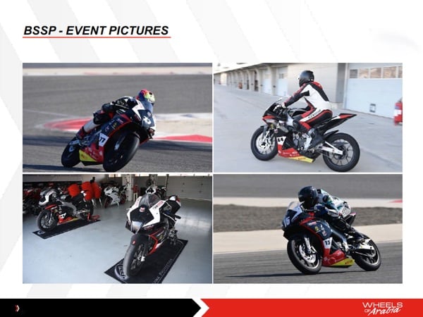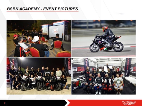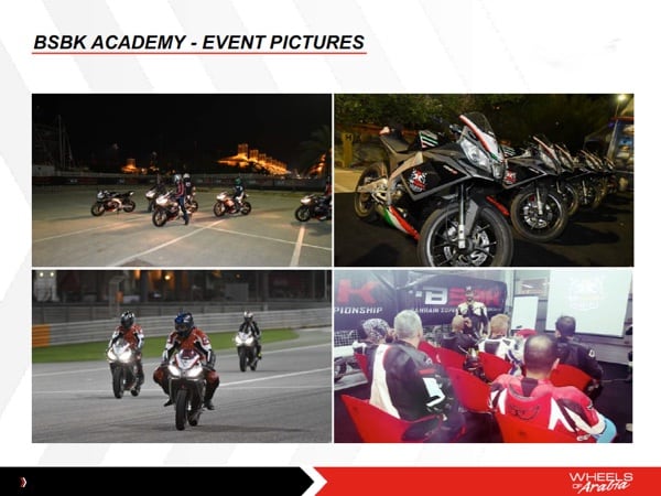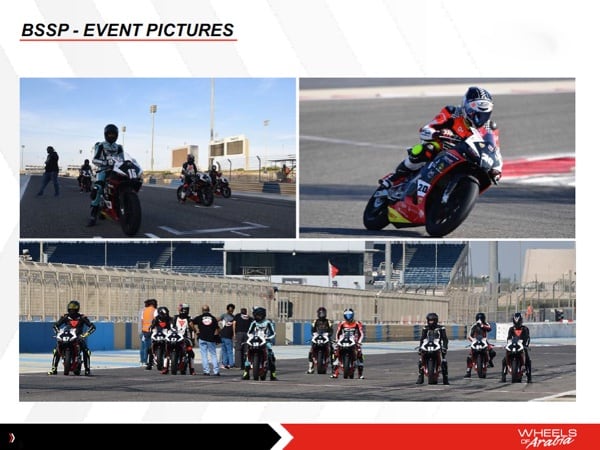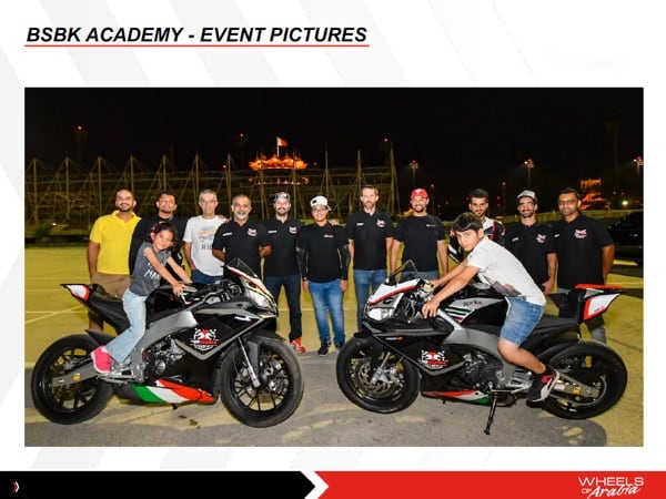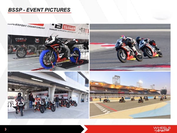 APRILIA. Wheels of Arabia is active in racing with Aprilia bikes that race in the Bahrain Super Sport Championship (Superbike), a series that serves as a development path for young riders on their way to professional racing. In fact, the BSSP (which attracts riders from all over the world) is focused on the development of young talent from Bahrain and their adequate preparation through the BSBK Academy.