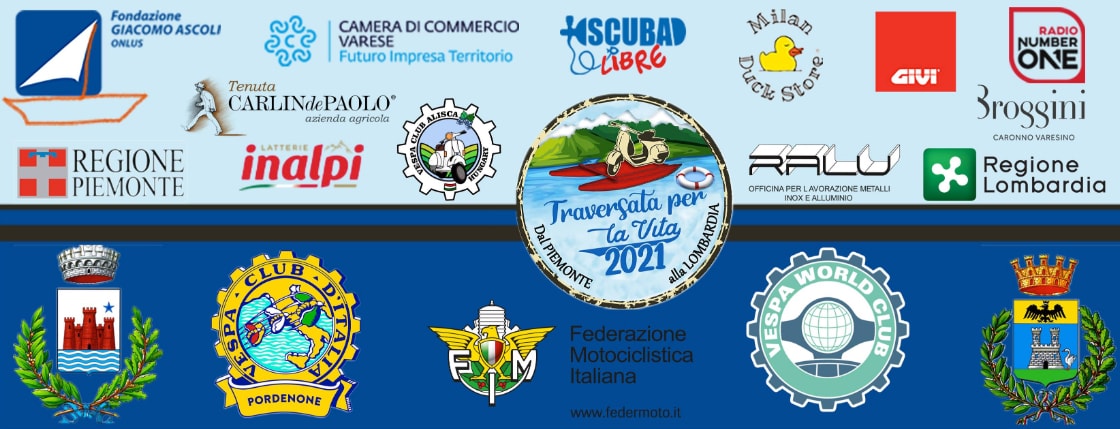 Fondazione Giacomo Ascoli Facebook (www.fondazionegiacomoascoli.it: “The extraordinary ‘Due Ruote Per la Vita’ initiative [translator’s note: Two Wheels for Life] will allow us to co-finance a scholarship for a researcher from the Insubria University in the field of treatments for oncological illnesses in children of the Varese Ospedale Del Ponte Day Centre. Protagonists, supporters, sponsors: Alessandro Pozzi; Municipality of Luino; Province of Varese; Lombardy Region; Piedmont Region; Asst de Sette Laghi; Vespa Club Alisca; Vespa World Club; Varese Milan Chamber of Commerce; Milan Duck Store; Moto Club Nino Manzoni, Luino; GIVI.”