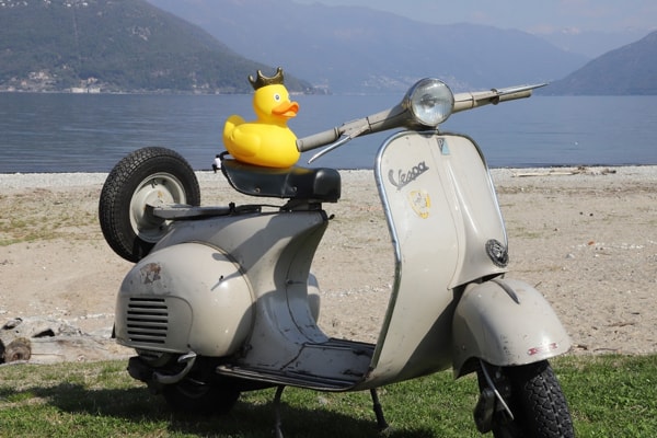 There were stands at the arrival in Luino set up by the Association, Motorcyclists and other companies with games for the children and souvenirs of the crossing symbol, a duckling in a thousand different forms. The give-aways that the Vespa World Club was kind enough to send were popular with everyone. We’ll also hand them out at the next event, called ‘Vespando in Turin and France 3’ (editor’s note: cultural Audax on Vespa, to discover Turin and the Mont Cenis, Iseran, and Petit St. Bernard Alpine passes, 30-31 July and 1 August 2021), which is to raise awareness on the problems of Autism and motorbike therapy for the autistic.