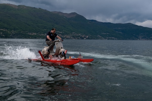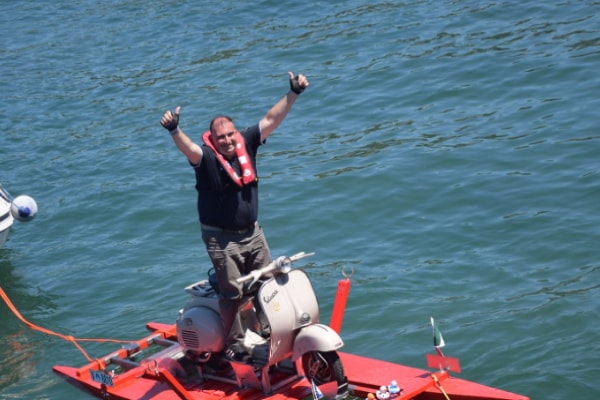 Alessandro Pozzi, 39 years old, commented for the numerous journalists who followed the challenge: “Vespa is my life, and this vehicle was specifically conceived and built. I can say that it is the only Vespa in the world registered as a vessel and that it can therefore sail in any waters.”