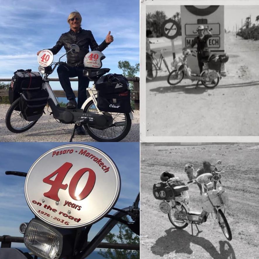 Emerson was perfectly organised when he left: his moped was fitted out down to the smallest detail, with a “celebratory” plaque fitted above the headlamp, a “registration plate” with his name and an adhesive of the Italian flag, and a personalised helmet. He remembers his first trip: “In 1976 there were no mobile phones, communication was difficult and travelling to Morocco really was an adventure. It was a period of political and social difficulties in Italy; I was a rock ‘n roll boy, I listened to rock music and dreamed of adventures. It’s great travelling on a motorcycle, but a Ciao is all you need to go, the wind in your face, to explore places and people, smells and experiences, in the company of your thoughts.” Emerson is an expert two-wheel traveller, but very careful about safety: “Forty years, even though it wasn’t compulsory, I was already wearing a crash helmet.” A great example for the youngsters.