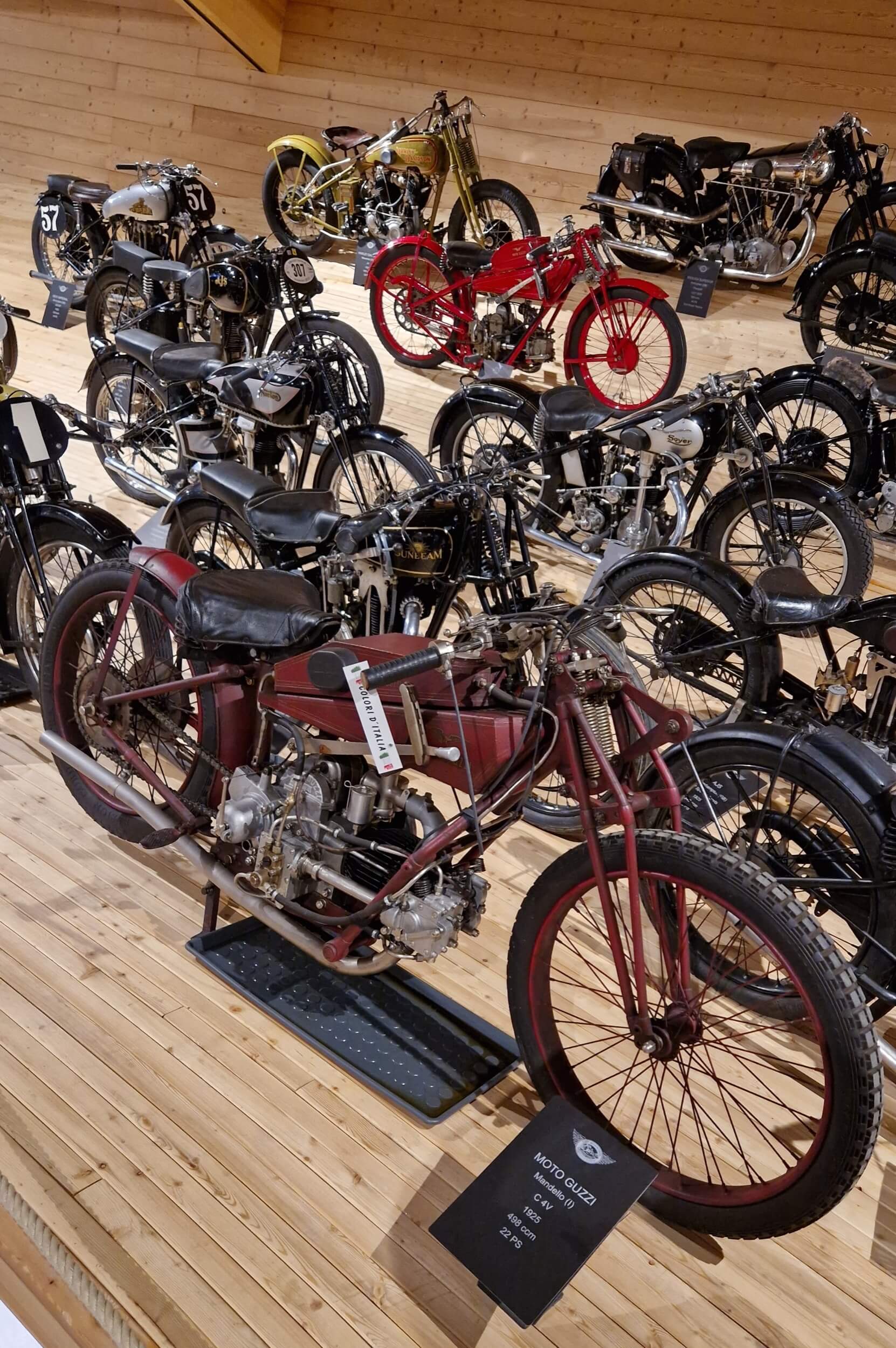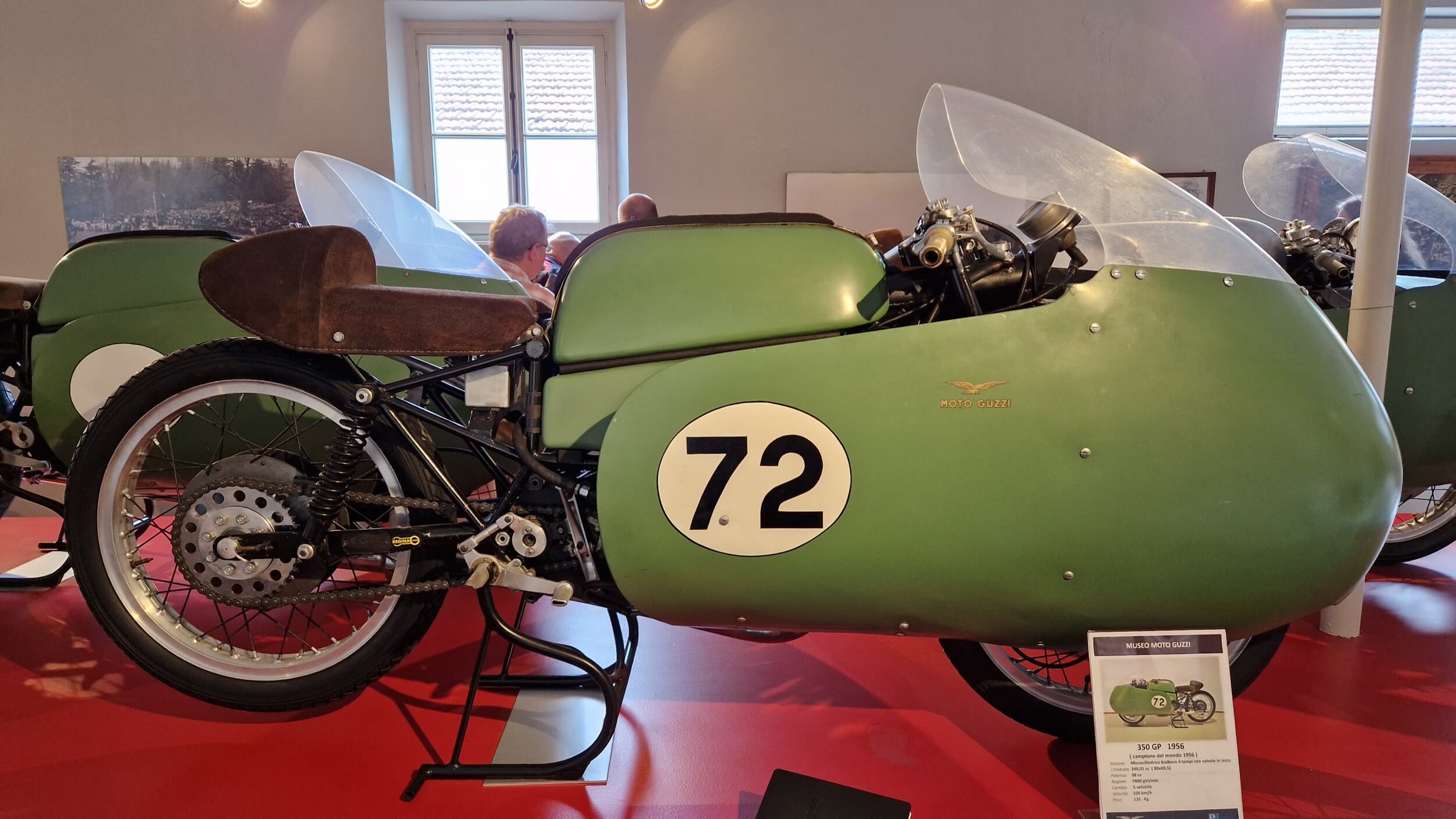 When we arrived in Lecco it still looked bad, so we rented an apartment for 2 nights. The next day, of course, we went to the 'Moto Guzzi Museum', especially to see and photograph the engines used in the record cars: the 120° 500cc V2, the 350cc single-cylinder and the 250cc single-cylinder with and without compressor. In the museum, a young German Guzzi-rider (V85TT) joins us. The six of us made a nice tour in the afternoon along the banks and on the slopes around the lake.