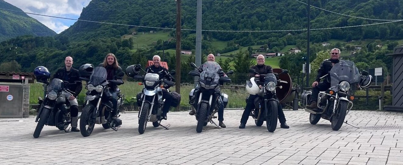 I collected as much information as I could but soon found out that real facts would have to be collected in Italy. An itinerary along places where something could be gained was made and at the end of May I jumped on the 'V7 II' for my very first solo motorcycle trip. 4 mates, including my son (on '24 V7 IV 850 Stone, '24 Stelvio, '82 California II & BMW F650GS), accompanied me to Mandello. On the way there we were treated on heavy rainfall, so the tents stayed packed, and we took hotel rooms in Lemberg and the next day in Lindau.
