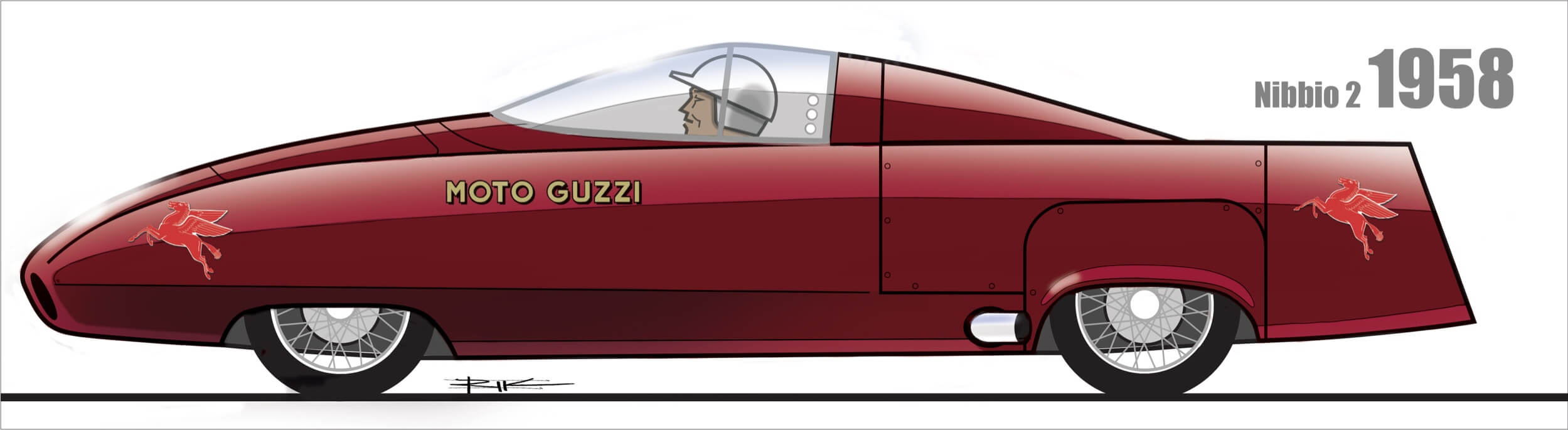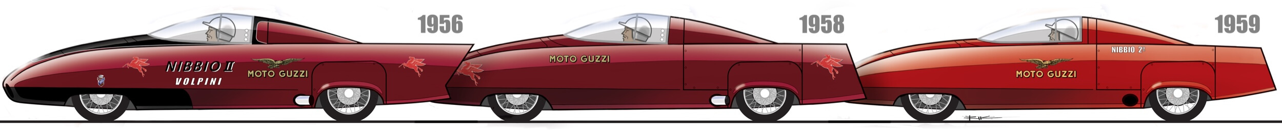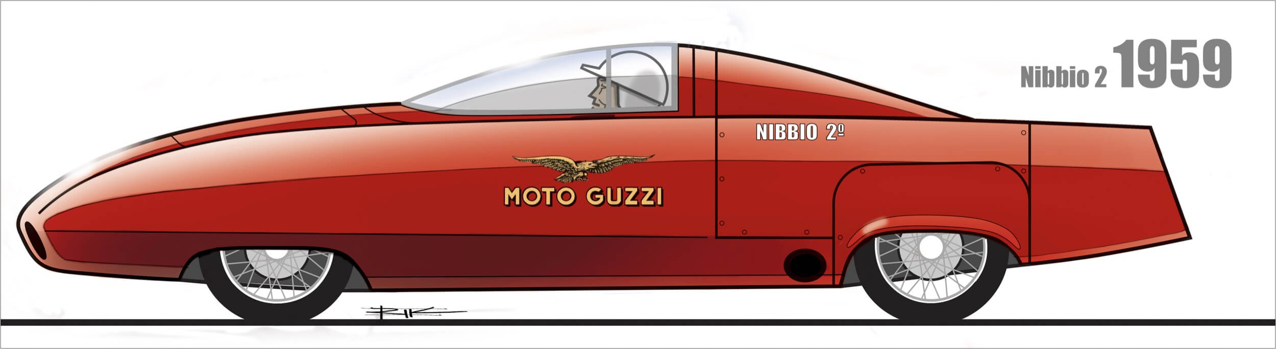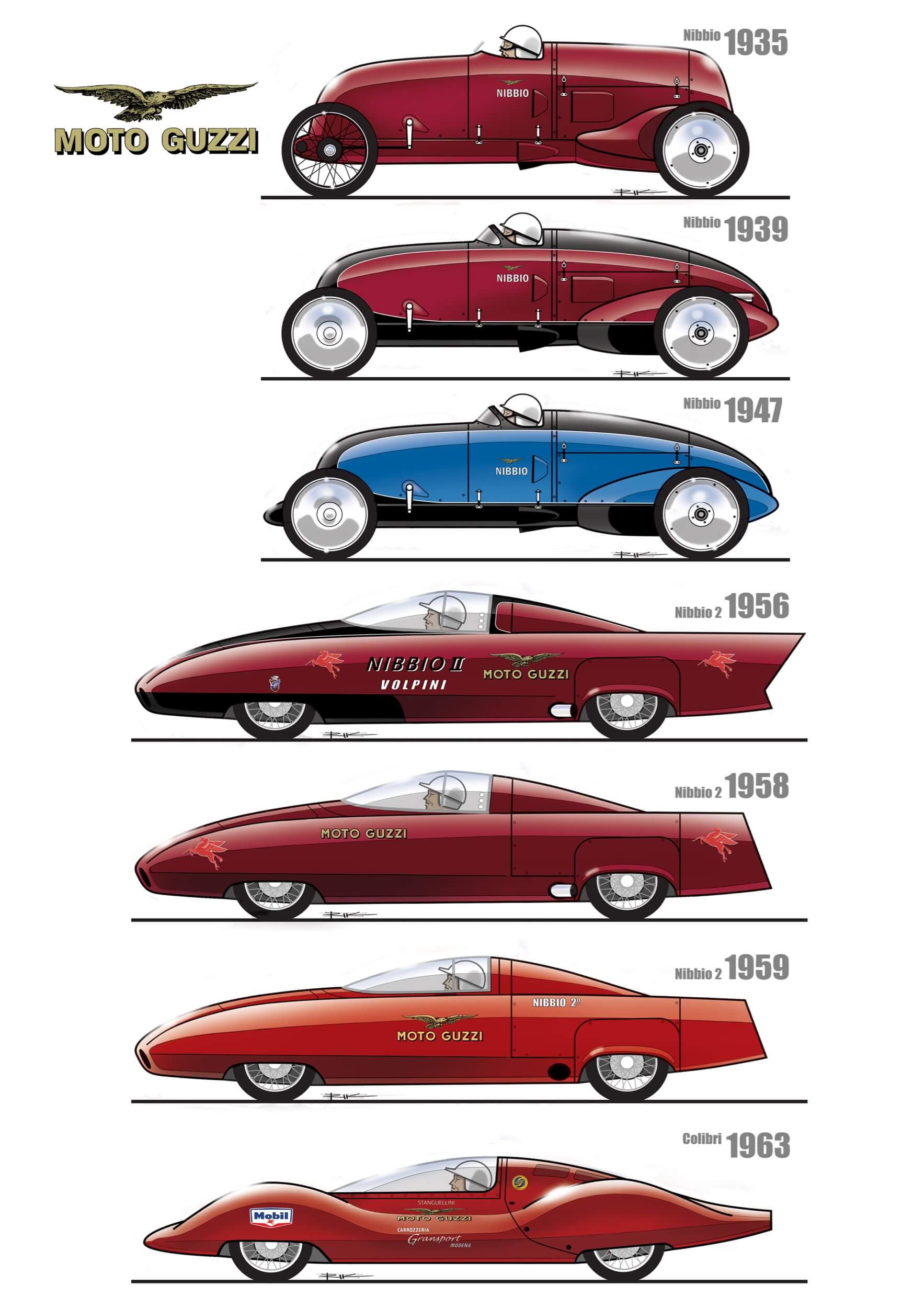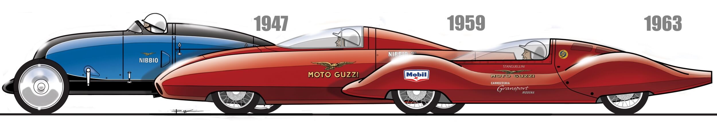 This is a story about three speed record cars: 'NIBBIO', 'NIBBIO 2' and 'COLIBRI', which were powered by 'Moto Guzzi' engines. It took place between 1935 and 1963.