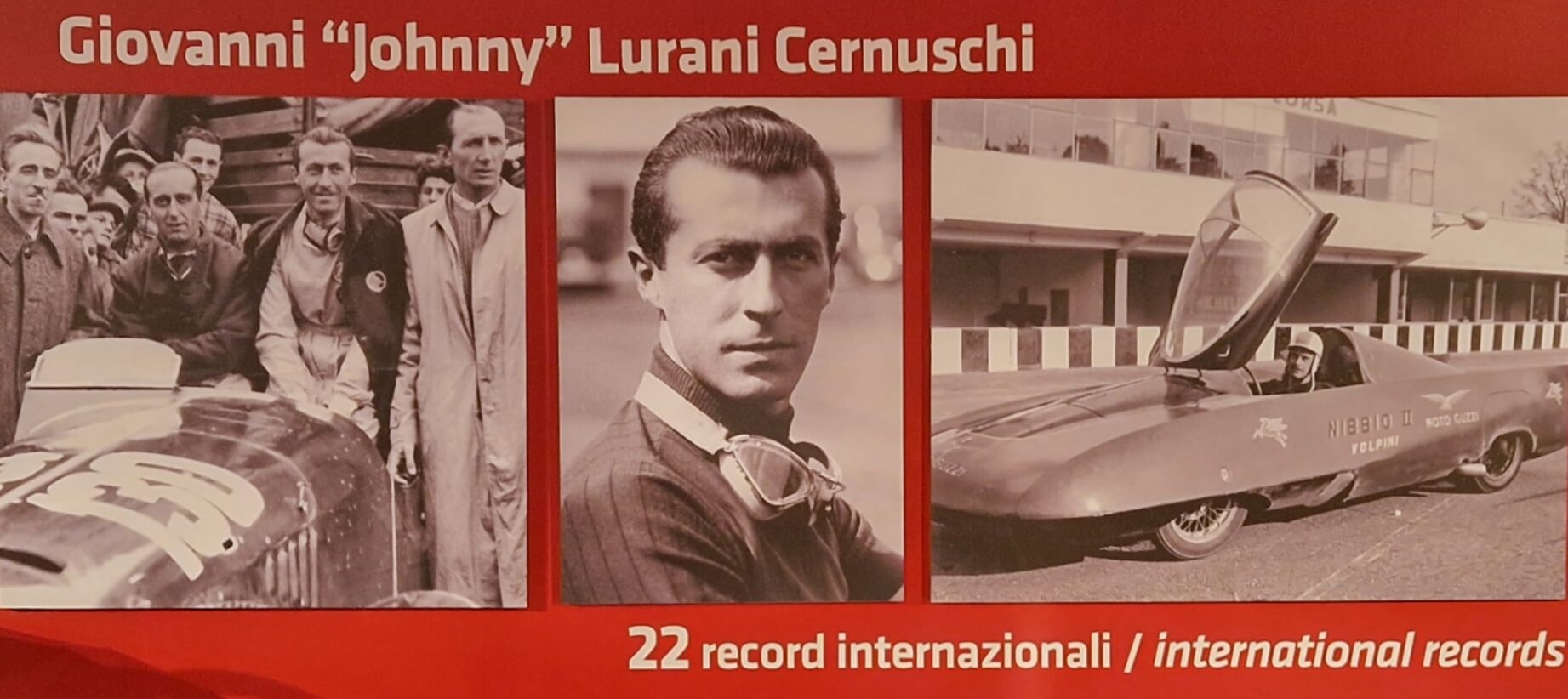 Through further research, I discovered information about the initiator behind the 3 record cars: Giovanni 'Johnny' Lurani Cernuschi, VIII Count of Calvenzano. Born (1905) and passed away (1995) on the family estate in Cernusco Lombardone. Lurani was a northern Italian nobleman with ‘petrol running in his veins’. He was also a true 'Uomo Universale': Engineer, race driver, writer, journalist, editor and as director he was member of the supervisory board of Moto Guzzi and held important positions within the FIM (Fédération Internationale de Motocyclisme) and the FIA (Fédération Internationale de l'Automobile), the organizers of MotoGP and F1.