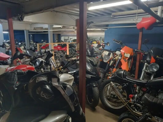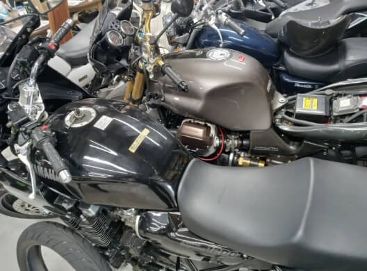 Count me impacted. Siren consists of Yoshio and four employees, all active racers, with two hundred plus bikes crammed into every cranny and spilling into the lot of a small two-story warehouse in the Koto City area of Tokyo. Most are sportbikes, street fighters and cafe racers built before computers took over the industry and turned such freedom machines into annoying iPads on wheels.