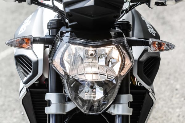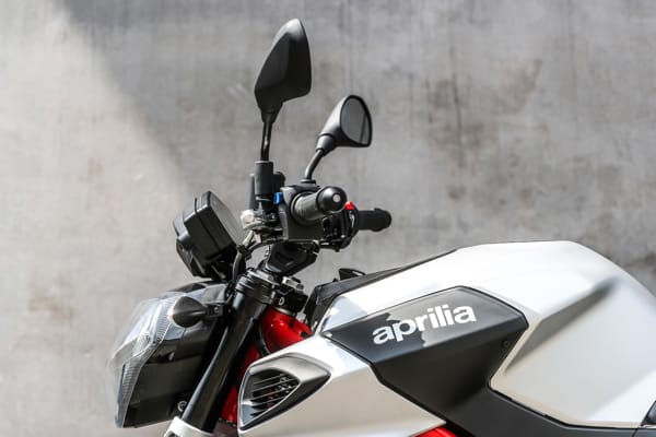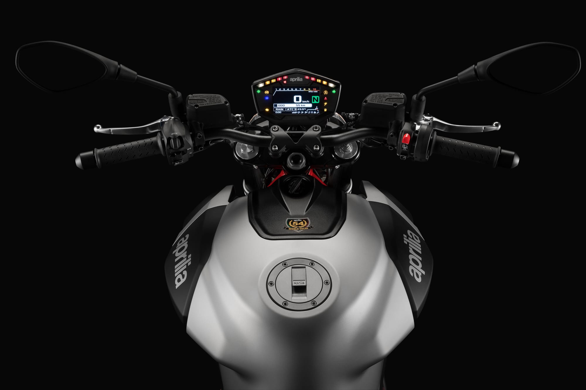 The fully electronic Ride-by-wire accelerator system, that made its début as standard equipment for a factory bike on none other than the first Shiver version, also changes and evolves. Now fully integrated in the throttle grip, the system is lighter thanks to the reduction of more than a half kilo of weight and it allows even more accurate management of the fuel/air mixture and the injection throttle valve opening based on numerous parameters including engine speed, gearbox position, air flow, throttle grip opening (in quantity and speed) and temperature, with great benefits in terms of smooth riding without opening/closing jerks, containment of harmful emissions and fuel consumption.