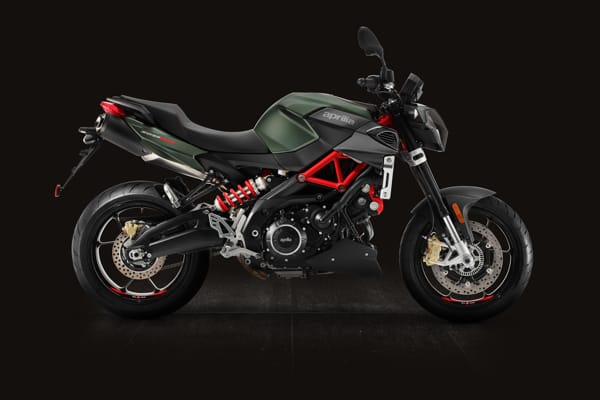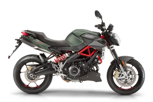 THE DESIGN: A NON-CONVENTIONAL SPORT NAKED. A non-conformist naked, the new Aprilia Shiver 900 places even more emphasis on a distinctive design: from the lateral air intake ducts that embrace the front end to the characteristic compact rear end with the exhaust pipes positioned under the saddle, the new superstructure – fuel tank side covers, side panels, tail, front mudguard – the aesthetics have been deeply revamped. The new twin cylinder also stands out for its aggressive features that highlight its distinctly sporty character: the frame, the shock absorber spring and the cylinder head covers are now painted red. Adrenaline-charged details that blend with the three available colour schemes – Evolution White, Hi Tech Silver and Unconventional Green – creating an original contrast.