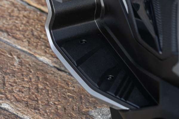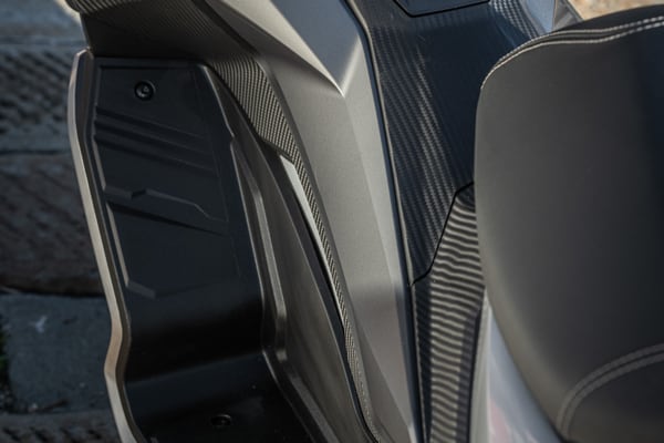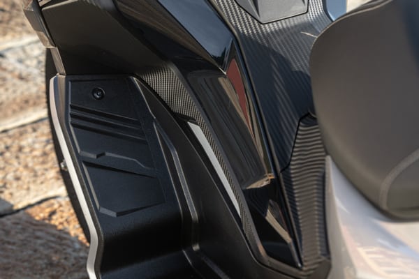 With the focus firmly on fun, the Aprilia SR GT riding position is less rearward and more "active" with respect to a traditional compact GT scooter. But the rider can adopt a different position, with their feet further forward on the footpegs, for a more relaxed riding style that is less tiring over long distances. This is possible thanks to an ergonomic footpeg, the external part of which resembles the shape of the protective plates on off-road bikes.