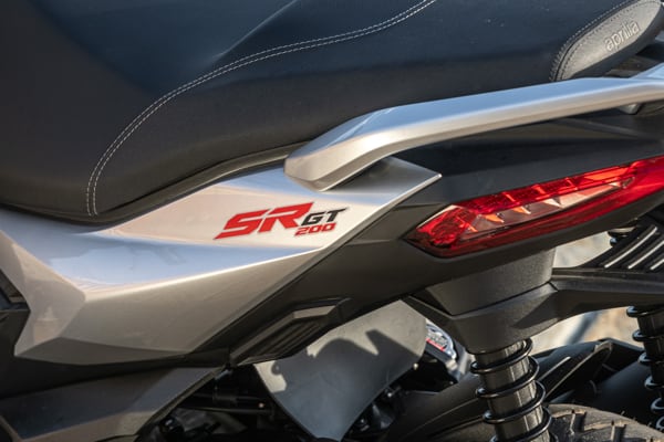 With its sophisticated chassis, a weight of just 144 kg with a full tank (148 kg for the 200 version) and light alloy rims - 14” at the front and 13” at the rear - with wide cross-section tyres (110/80 and 130/70), Aprilia SR GT offers excellent agility and handling in traffic, but is also stable at more sustained speeds.