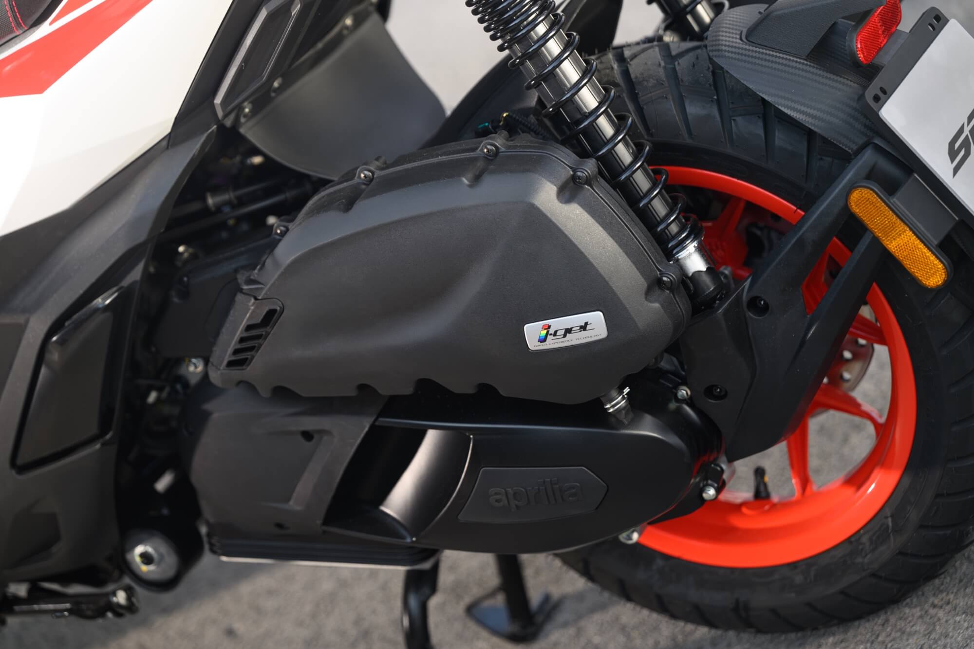 Latest generation i-get engines, for top-class performance. The Aprilia SR GT also makes its mark on the compact GT scooter segment in terms of its engine power and efficiency. As part of the i-get family, this pair of very modern Euro 5+-approved units with electronic injection, four valves and liquid cooling are the product of Piaggio Group R&D department's expertise when it comes to scooter engines: indeed, it is the most important centre in Europe.