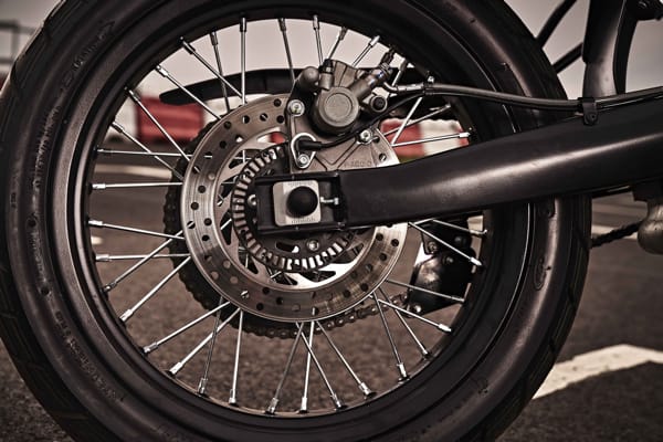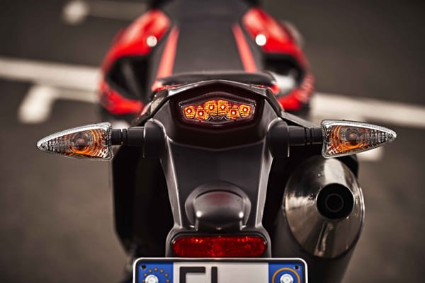 Specialist motorcycles like the SX and RX also need high-level components, especially for the wheels, a key element for combining sturdiness and lightness. Aprilia RX uses prestigious spoked wheels with new anodised black hubs. Aprilia SX also adopts spoked wheels, 17 inches in this case, with wide channel and generously sized sports tyres – 100/80-17" and 130/70-17" – to provide maximum grip in any conditions.