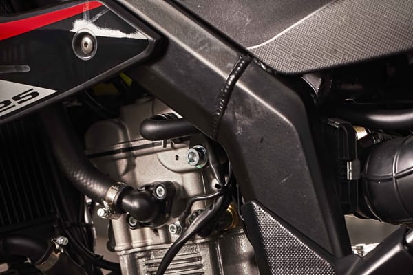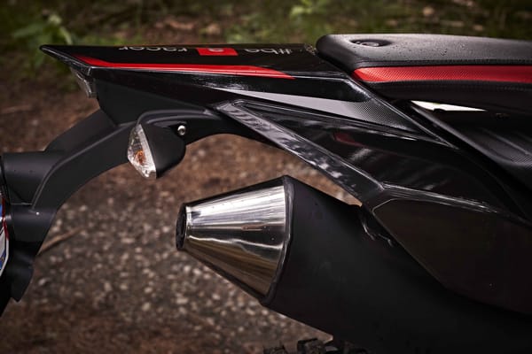 With these bikes Aprilia has perfected the four-stroke engine to bring it in line with the strict Euro 4 standard without detracting from performance. The brilliant lightweight single-cylinder engine easily reaches the maximum power ceiling for this displacement, with a thrillingly brilliant acceleration.
