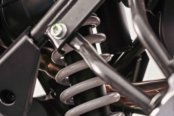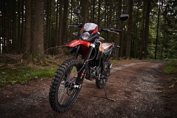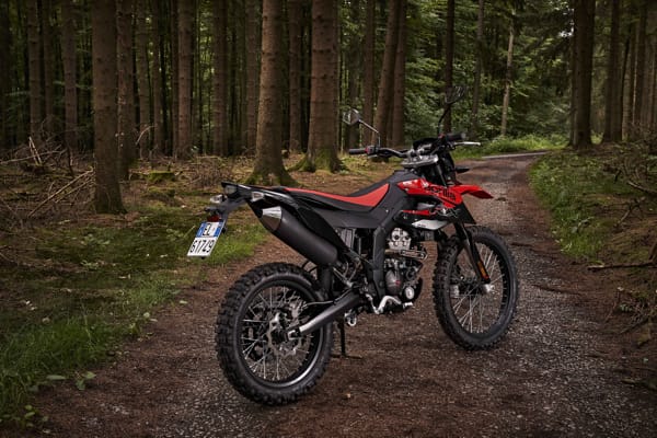 The RX instead comes with two beautiful wave discs, 260 mm front and 220 mm rear, clearly taken from the racing world. The sturdy double cradle steel frame is coupled with oversized suspension: the powerful 41 mm upside down telescopic fork offering wheel travel of 240 mm. At the rear, the long steel swingarm optimises traction, with a wheel travel of 220 mm, connected to the frame and shock absorber with progressive linkage.