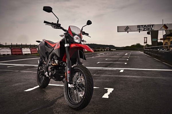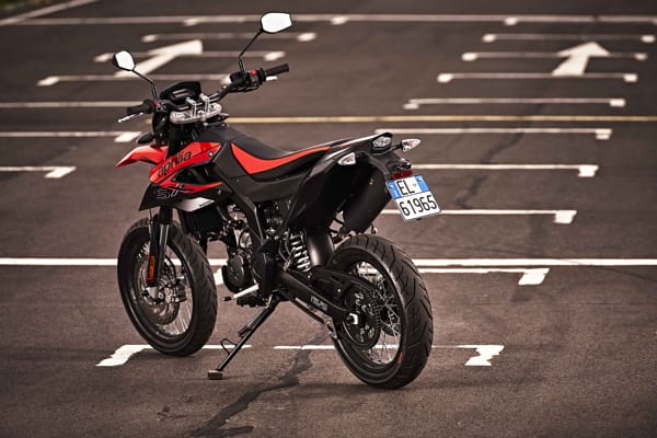 The wheels fitted with 17" sports tyres, make Aprilia SX one of the most effective 125s on mixed runs; nimble and lightweight, it provides the performance of larger engined supermotard bikes without exceeding the power limit of the class, partly due to its sophisticated and generous engine performance. All complemented by a line inspired by the Aprilia motorcycles that marked a new trend in off-road design.