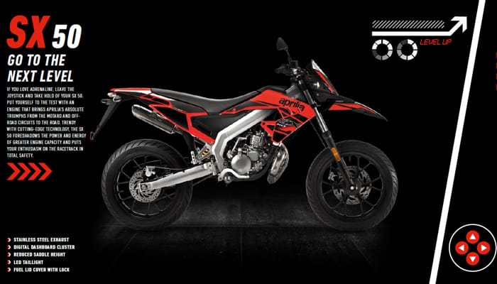 June, 2018 – Heirs of Aprilia’s history of success in off-road competitions, the updated SX and RX 125s boast a sophisticated design, powerful performance and advanced technology that makes them bikes for people who want to stand out from the crowd right from the start of their two-wheel career.