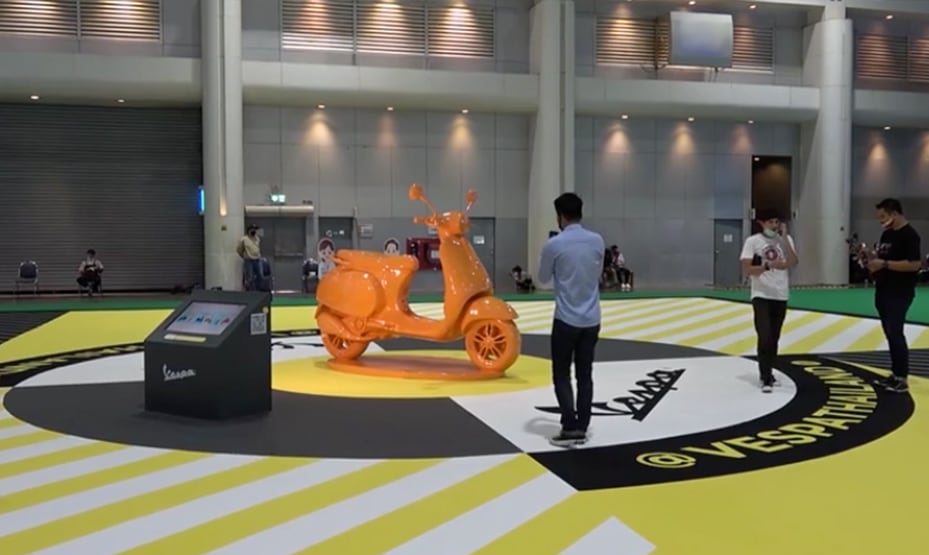 Vespa Thailand participated with an installation that aroused quite a bit of curiosity: a sort of Vespa sculpture, orange in colour, with a touch screen information station. A “tribute” to celebrate the 10 year anniversary of Vespa LX.