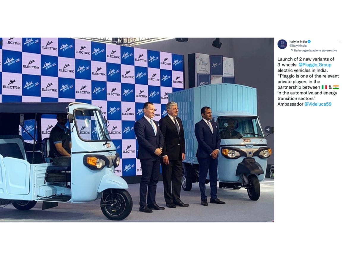 “Piaggio is one of the icons of Made in Italy. Over the decades, it has always been a pioneer in consolidating pillars of Make in India. In this framework, today, the Italian company is entering a new phase with the aim of facing new challenges such as energy transition, energy efficiency, electric mobility. Piaggio represents one of the relevant private players in the partnership between Italy and India in the automotive and energy transition sectors",
