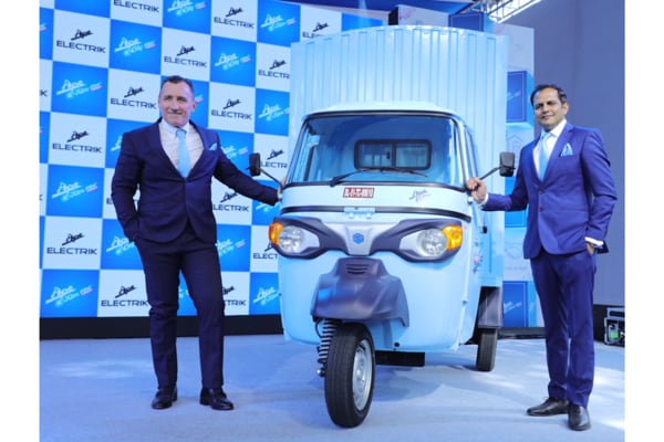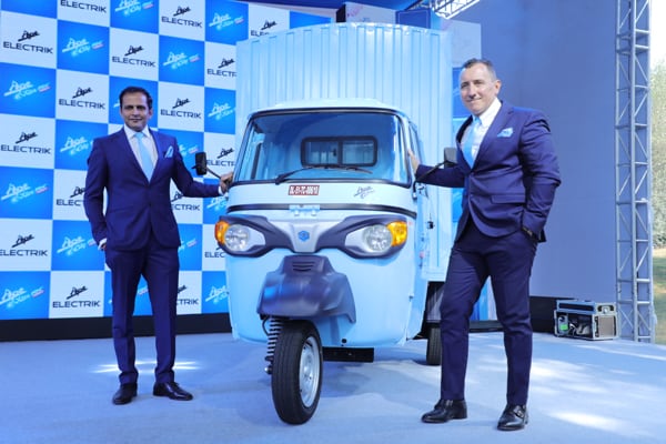 From left, Mr. Sudhanshu Agrawal and Mr. Diego Graffi unveiling the new Apé E-City FX Max and Apé E-Xtra FX Max. Source: PVPL.
