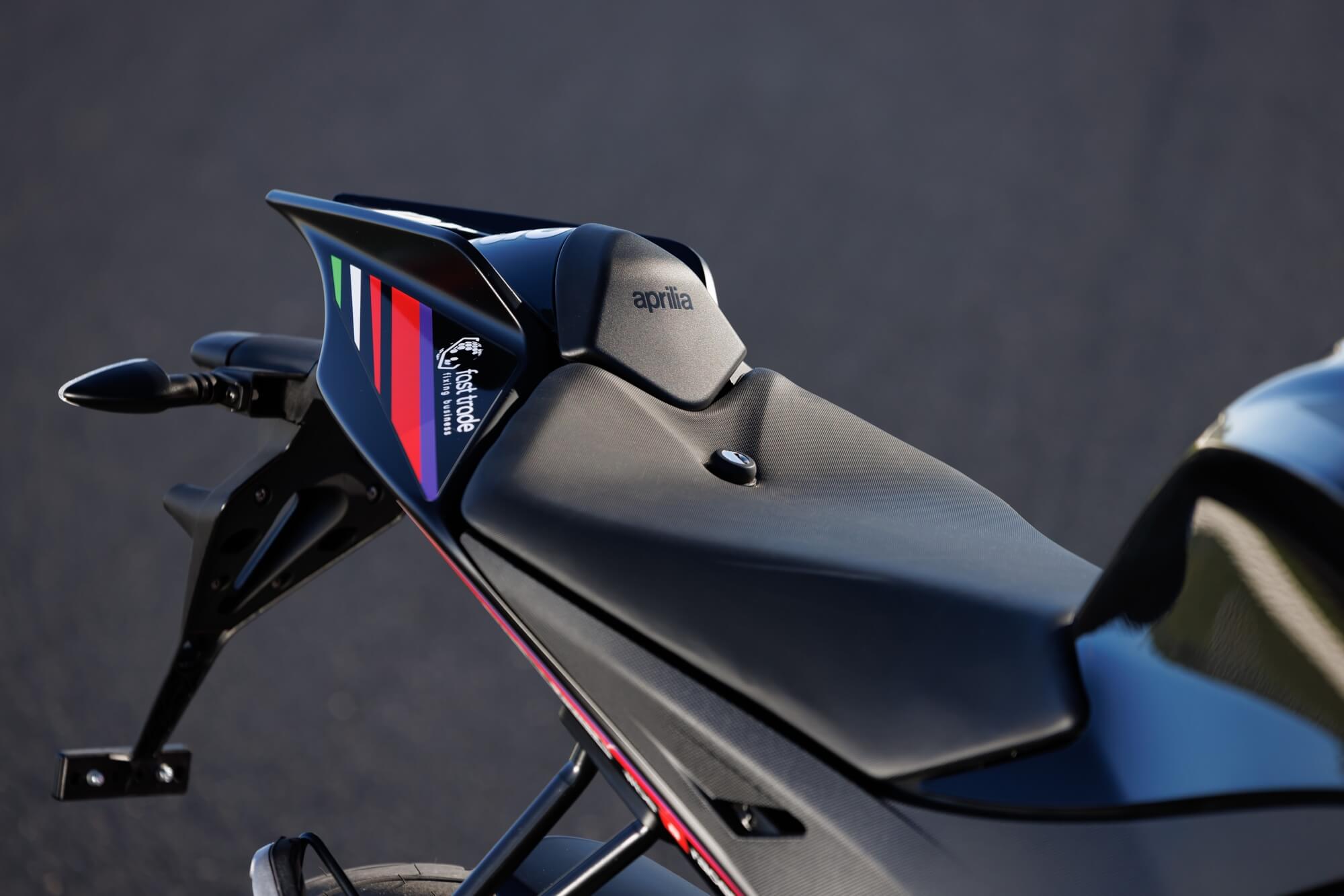 A bold aesthetic that instantly evokes the track and a sense of competition, further enhanced by the bold matte black paint finish of the swingarm and frame, crafted from die-cast aluminium beams with cross-ribbed reinforcement - the result of Aprilia's extensive expertise.