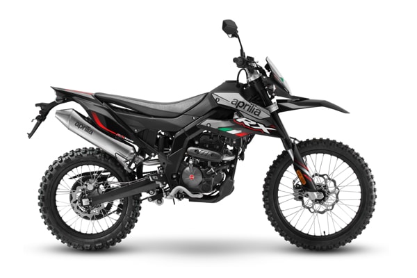 COLOURS. Aprilia RX 125 is available in the Silver Speedway colour scheme and the new Rally Tribute graphic variation, joined for the SX 125 by the aggressive Red Raceway colour scheme.